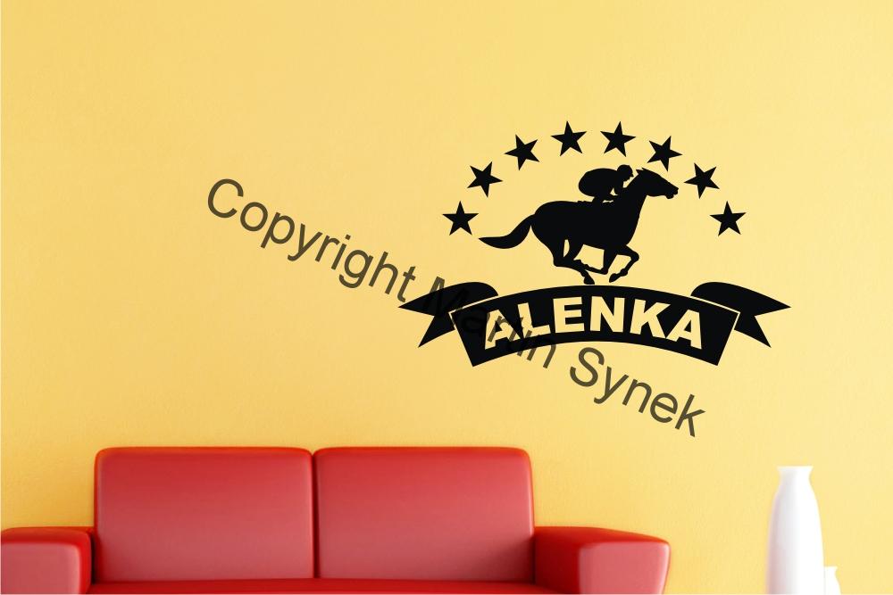 Samolepka na zeď emblém se jménem a znakem koně.. Ve vlastnostech si prosím zadejte velikost a barvu. Jméno uveďte prosím do poznámky..