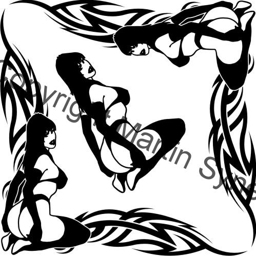 Ozdobná sada samolepek na obě okna kamionu. Klasická, řezaná samolepka. To znamená, že když například vyberete modrou samolepku, bude motiv modrý a vše mimo motiv i vně motivu bude mít barvu podkladu kam samolepku lepíte.