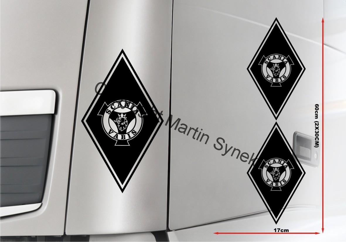 Sada samolepek na deflektor či zrcátku, kabinu, kamkoliv. Sada obsahuje vždy dvě samolepky na levou a pravou stranu. Klasická, řezaná samolepka. To znamená, že když například vyberete modrou samolepku, bude motiv modrý a vše mimo motiv i vně motivu bude mít barvu podkladu kam samolepku lepíte.