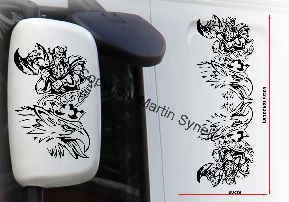 Sada samolepek na deflektor či zrcátku, kabinu, kamkoliv. Sada obsahuje vždy dvě samolepky na levou a pravou stranu. Klasická, řezaná samolepka. To znamená, že když například vyberete modrou samolepku, bude motiv modrý a vše mimo motiv i vně motivu bude mít barvu podkladu kam samolepku lepíte.