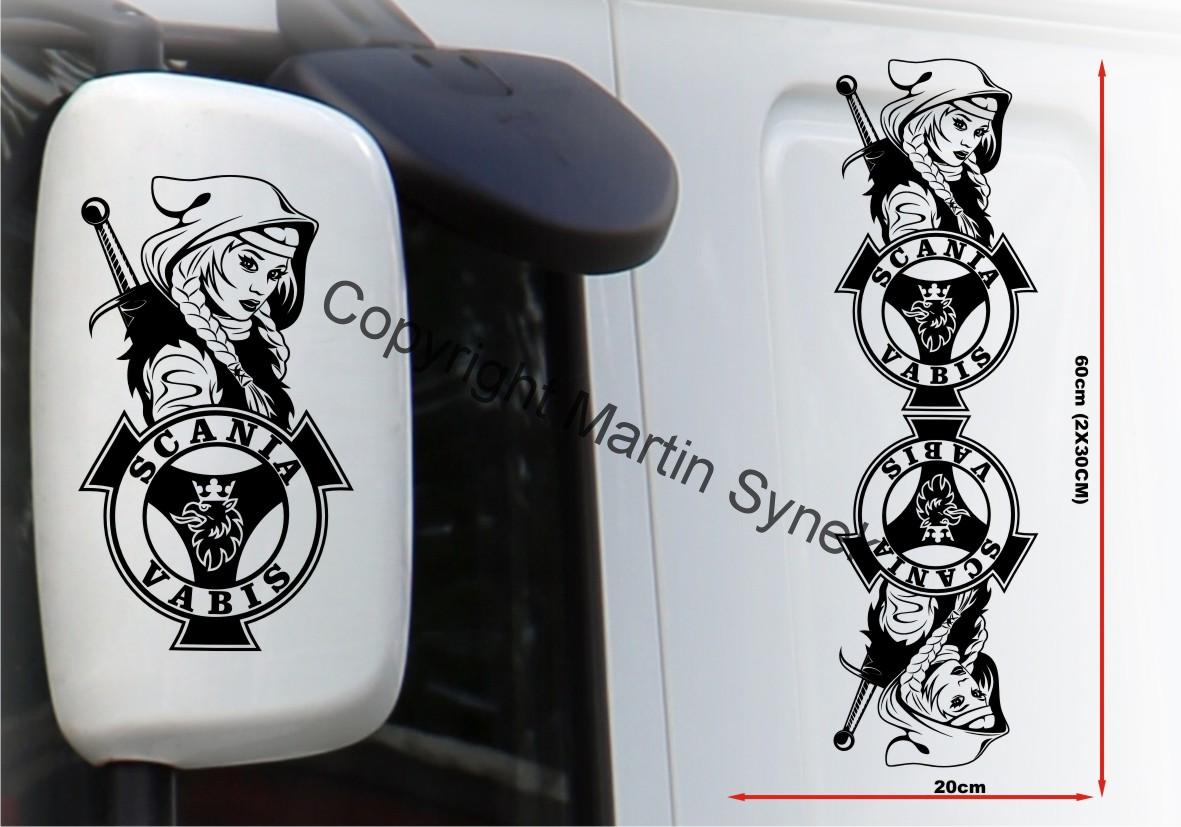 Sada samolepek na deflektor či zrcátku, kabinu, kamkoliv. Sada obsahuje vždy dvě samolepky na levou a pravou stranu. Klasická, řezaná samolepka. To znamená, že když například vyberete modrou samolepku, bude motiv modrý a vše mimo motiv i vně motivu bude mít barvu podkladu kam samolepku lepíte.