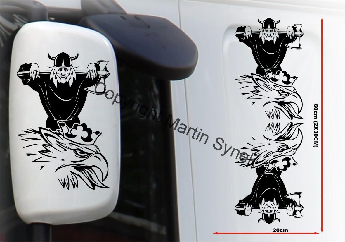 Sada samolepek na deflektor či zrcátku, kabinu, kamkoliv. Sada obsahuje vždy dvě samolepky na levou a pravou stranu. Klasická, řezaná samolepka. To znamená, že když například vyberete modrou samolepku, bude motiv modrý a vše mimo motiv i vně motivu bude mít barvu podkladu kam samolepku lepíte.