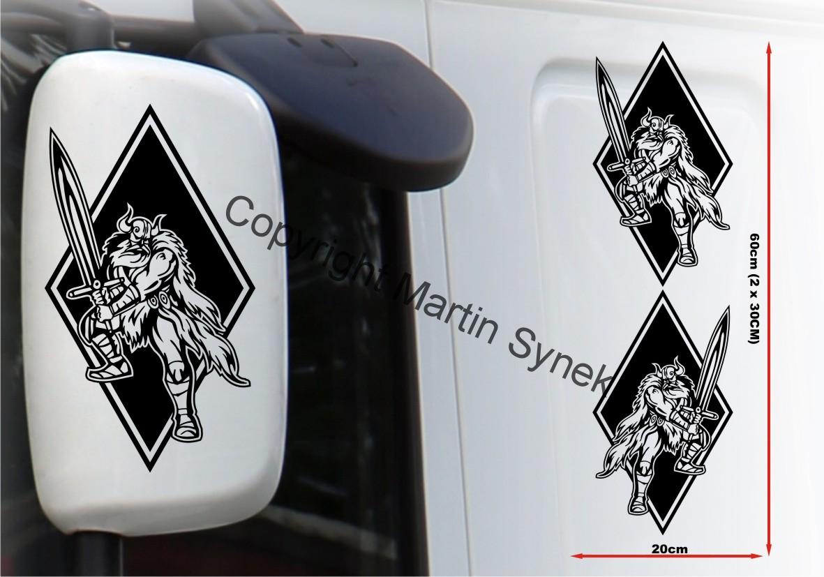 Sada samolepek na deflektor či zrcátku, kabinu, kamkoliv. Sada obsahuje vždy dvě samolepky na levou a pravou stranu. Klasická, řezaná samolepka. To znamená, že když například vyberete modrou samolepku, bude motiv modrý a vše mimo motiv i vně motivu bude mít barvu podkladu kam samolepku lepíte.