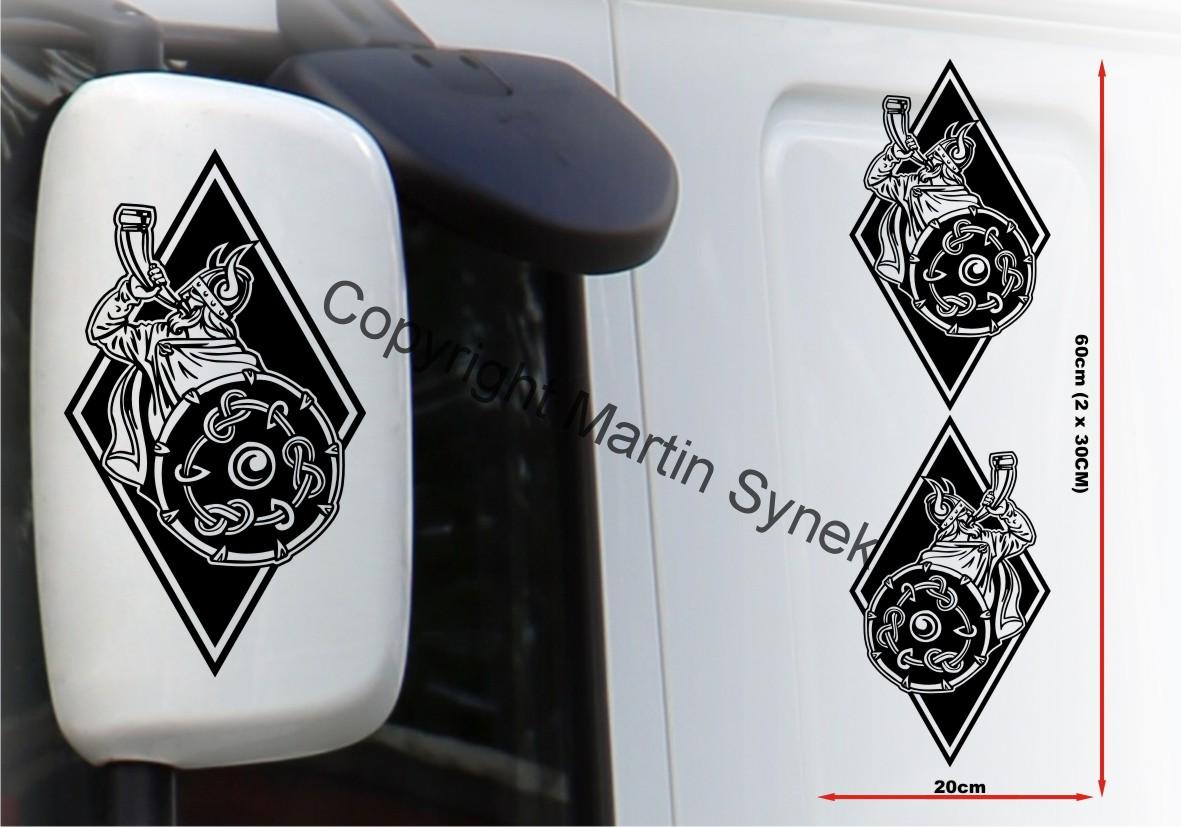 Sada samolepek na deflektor či zrcátku, kabinu, kamkoliv. Sada obsahuje vždy dvě samolepky na levou a pravou stranu. Klasická, řezaná samolepka. To znamená, že když například vyberete modrou samolepku, bude motiv modrý a vše mimo motiv i vně motivu bude mít barvu podkladu kam samolepku lepíte.