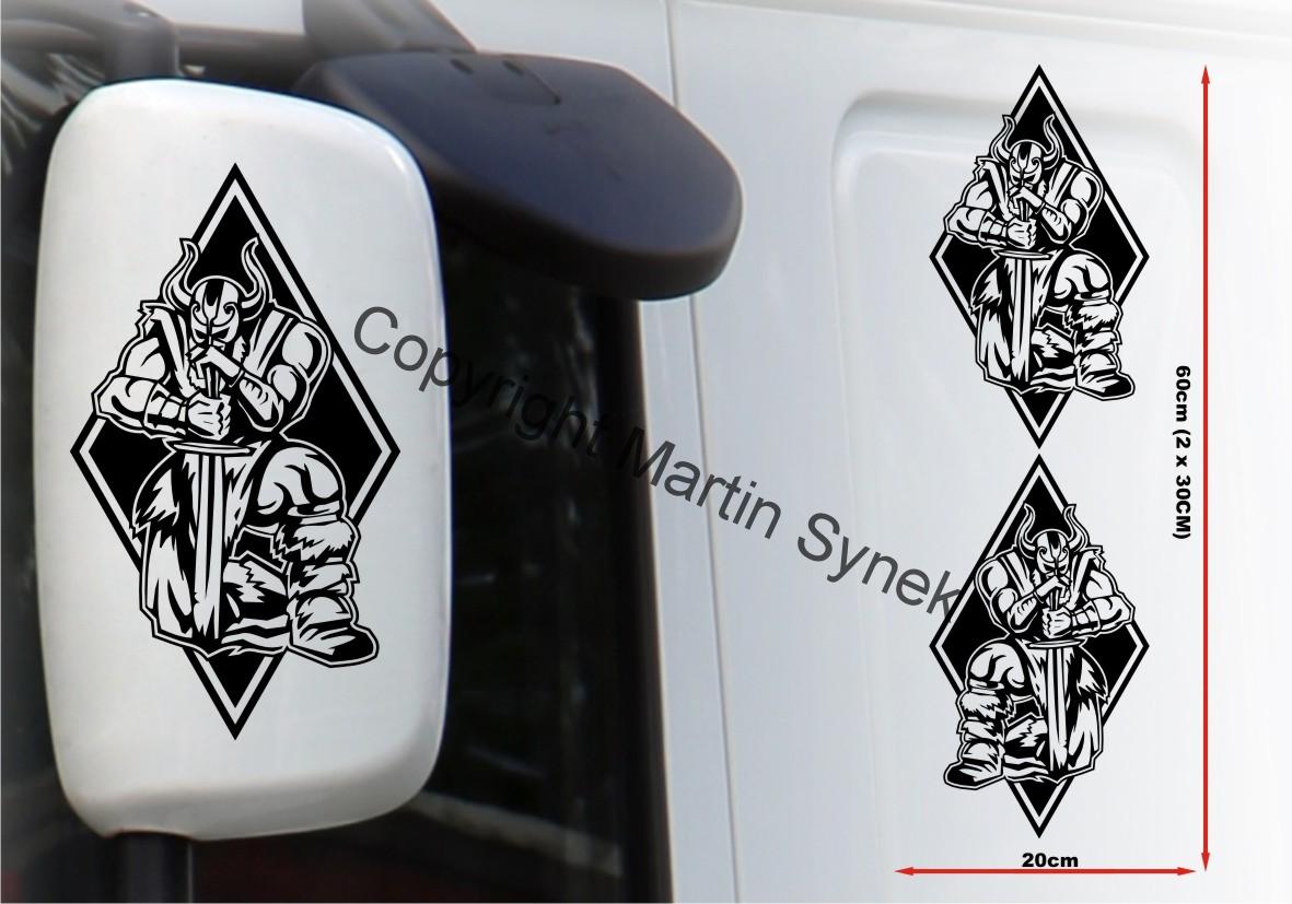 Sada samolepek na deflektor či zrcátku, kabinu, kamkoliv. Sada obsahuje vždy dvě samolepky na levou a pravou stranu. Klasická, řezaná samolepka. To znamená, že když například vyberete modrou samolepku, bude motiv modrý a vše mimo motiv i vně motivu bude mít barvu podkladu kam samolepku lepíte.