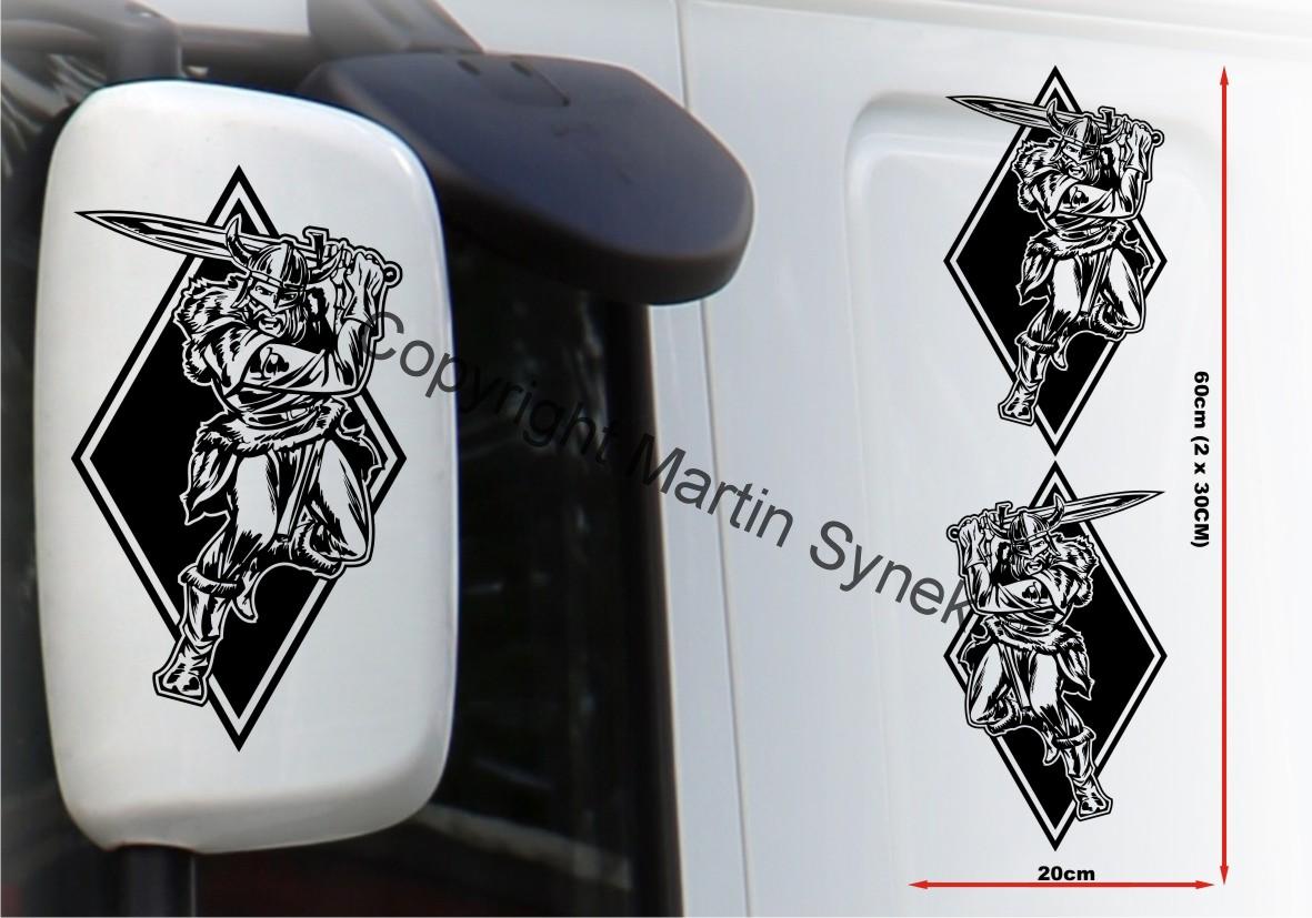 Sada samolepek na deflektor či zrcátku, kabinu, kamkoliv. Sada obsahuje vždy dvě samolepky na levou a pravou stranu. Klasická, řezaná samolepka. To znamená, že když například vyberete modrou samolepku, bude motiv modrý a vše mimo motiv i vně motivu bude mít barvu podkladu kam samolepku lepíte.
