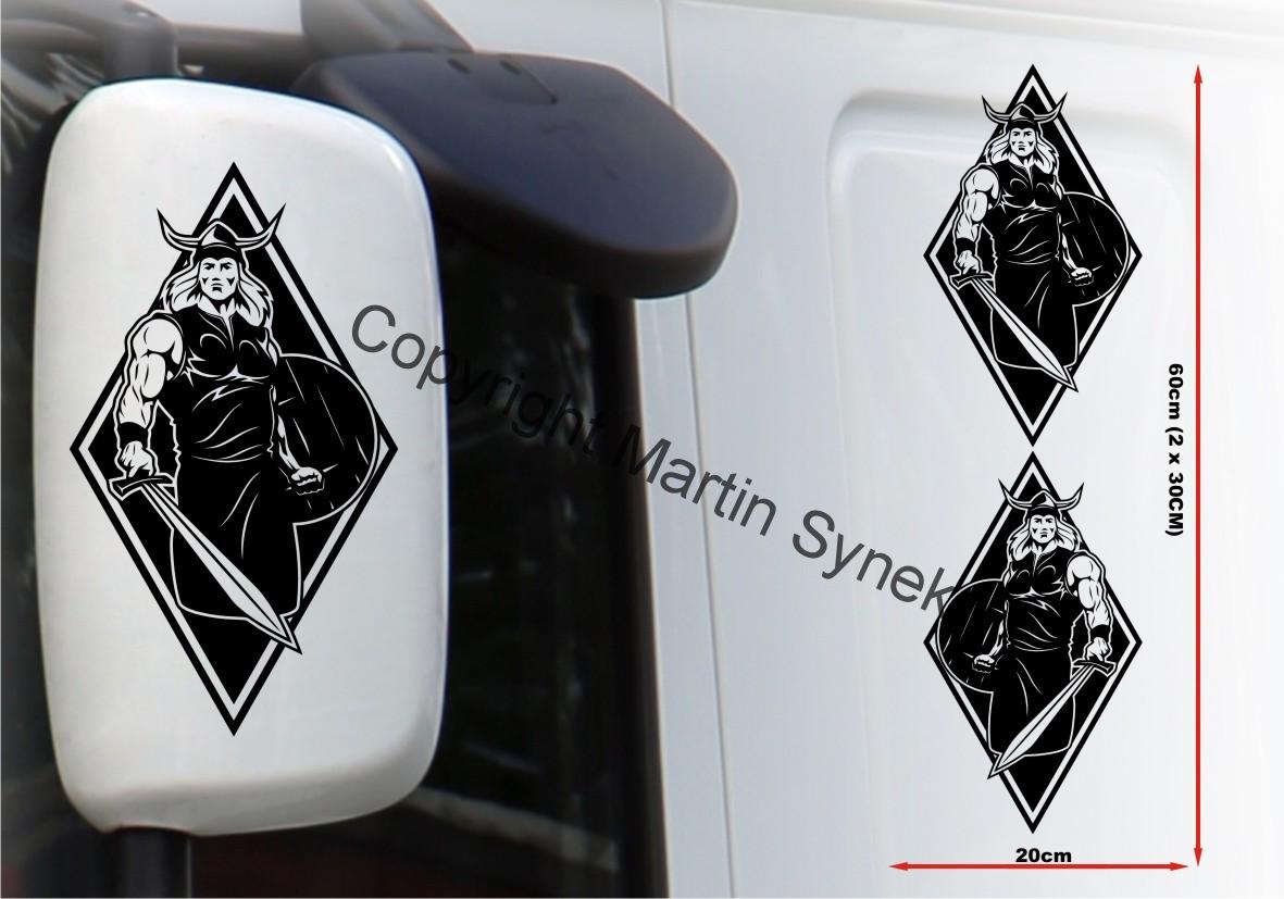 Sada samolepek na deflektor či zrcátku, kabinu, kamkoliv. Sada obsahuje vždy dvě samolepky na levou a pravou stranu. Klasická, řezaná samolepka. To znamená, že když například vyberete modrou samolepku, bude motiv modrý a vše mimo motiv i vně motivu bude mít barvu podkladu kam samolepku lepíte.