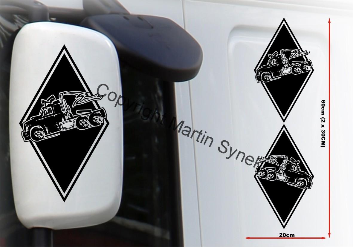 Sada samolepek na deflektor či zrcátku, kabinu, kamkoliv. Sada obsahuje vždy dvě samolepky na levou a pravou stranu. Klasická, řezaná samolepka. To znamená, že když například vyberete modrou samolepku, bude motiv modrý a vše mimo motiv i vně motivu bude mít barvu podkladu kam samolepku lepíte.