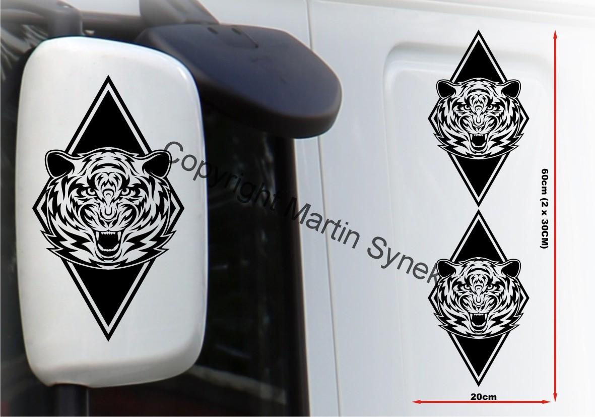 Sada samolepek na deflektor či zrcátku, kabinu, kamkoliv. Sada obsahuje vždy dvě samolepky na levou a pravou stranu. Klasická, řezaná samolepka. To znamená, že když například vyberete modrou samolepku, bude motiv modrý a vše mimo motiv i vně motivu bude mít barvu podkladu kam samolepku lepíte.