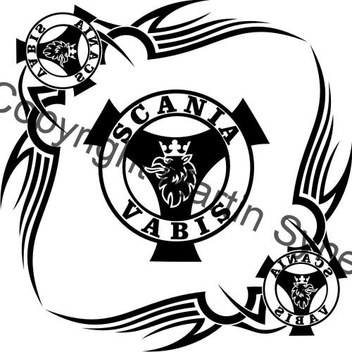 Ozdobná sada samolepek na obě okna kamionu. Klasická, řezaná samolepka. To znamená, že když například vyberete modrou samolepku, bude motiv modrý a vše mimo motiv i vně motivu bude mít barvu podkladu kam samolepku lepíte.