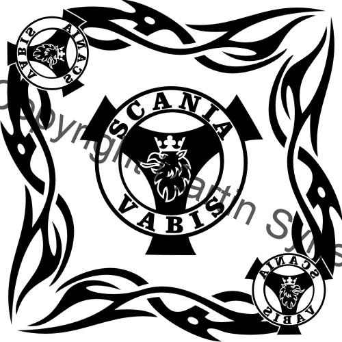 Ozdobná sada samolepek na obě okna kamionu. Klasická, řezaná samolepka. To znamená, že když například vyberete modrou samolepku, bude motiv modrý a vše mimo motiv i vně motivu bude mít barvu podkladu kam samolepku lepíte.