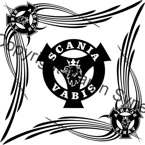 Ozdobná sada samolepek na obě okna kamionu. Klasická, řezaná samolepka. To znamená, že když například vyberete modrou samolepku, bude motiv modrý a vše mimo motiv i vně motivu bude mít barvu podkladu kam samolepku lepíte.