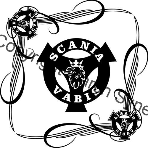 Ozdobná sada samolepek na obě okna kamionu. Klasická, řezaná samolepka. To znamená, že když například vyberete modrou samolepku, bude motiv modrý a vše mimo motiv i vně motivu bude mít barvu podkladu kam samolepku lepíte.