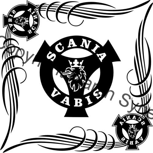 Ozdobná sada samolepek na obě okna kamionu. Klasická, řezaná samolepka. To znamená, že když například vyberete modrou samolepku, bude motiv modrý a vše mimo motiv i vně motivu bude mít barvu podkladu kam samolepku lepíte.