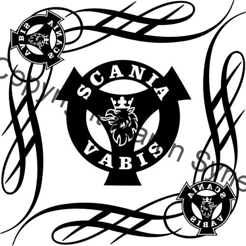 Ozdobná sada samolepek na obě okna kamionu. Klasická, řezaná samolepka. To znamená, že když například vyberete modrou samolepku, bude motiv modrý a vše mimo motiv i vně motivu bude mít barvu podkladu kam samolepku lepíte.