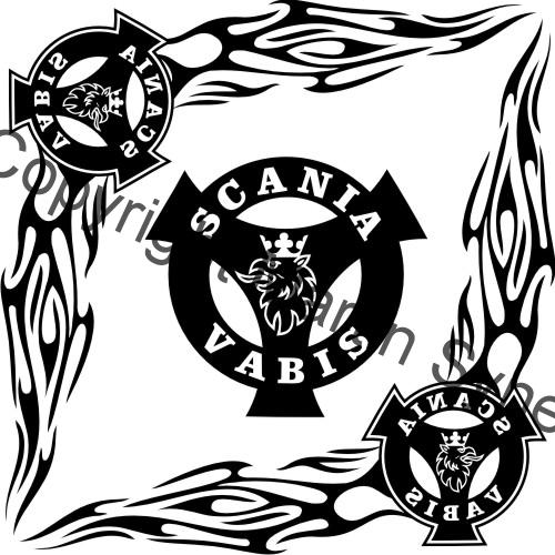 Ozdobná sada samolepek na obě okna kamionu. Klasická, řezaná samolepka. To znamená, že když například vyberete modrou samolepku, bude motiv modrý a vše mimo motiv i vně motivu bude mít barvu podkladu kam samolepku lepíte.