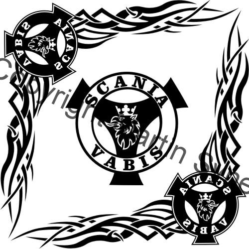 Ozdobná sada samolepek na obě okna kamionu. Klasická, řezaná samolepka. To znamená, že když například vyberete modrou samolepku, bude motiv modrý a vše mimo motiv i vně motivu bude mít barvu podkladu kam samolepku lepíte.