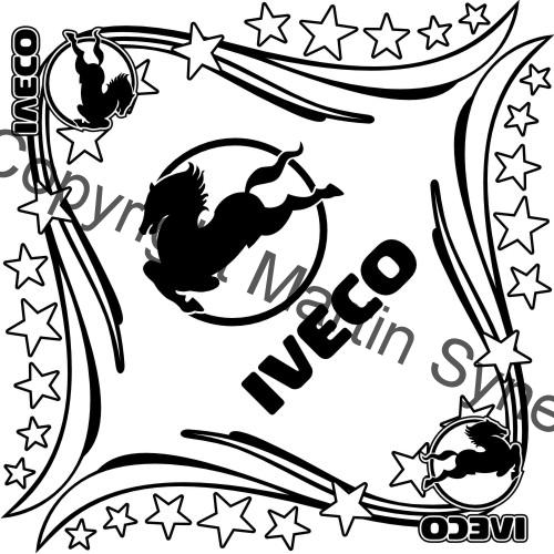 Ozdobná sada samolepek na obě okna kamionu. Klasická, řezaná samolepka. To znamená, že když například vyberete modrou samolepku, bude motiv modrý a vše mimo motiv i vně motivu bude mít barvu podkladu kam samolepku lepíte.