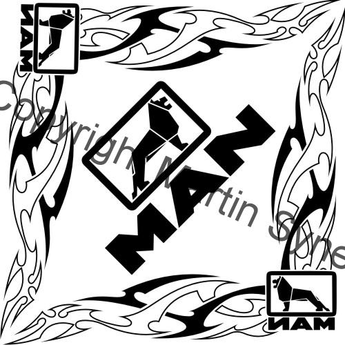 Ozdobná sada samolepek na obě okna kamionu. Klasická, řezaná samolepka. To znamená, že když například vyberete modrou samolepku, bude motiv modrý a vše mimo motiv i vně motivu bude mít barvu podkladu kam samolepku lepíte.