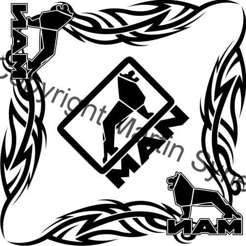 Ozdobná sada samolepek na obě okna kamionu. Klasická, řezaná samolepka. To znamená, že když například vyberete modrou samolepku, bude motiv modrý a vše mimo motiv i vně motivu bude mít barvu podkladu kam samolepku lepíte.