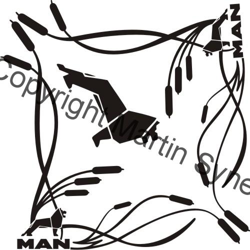 Ozdobná sada samolepek na obě okna kamionu. Klasická, řezaná samolepka. To znamená, že když například vyberete modrou samolepku, bude motiv modrý a vše mimo motiv i vně motivu bude mít barvu podkladu kam samolepku lepíte.