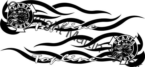 Dekorační samolepka na bok kabiny, buď na vrch kabiny, nebo na boky. Sada obsahuje dvě samolepky na levou i pravou stranu kabiny. Klasická, řezaná samolepka. To znamená, že když například vyberete modrou samolepku, bude motiv modrý a vše mimo motiv i vně motivu bude mít barvu podkladu kam samolepku lepíte.