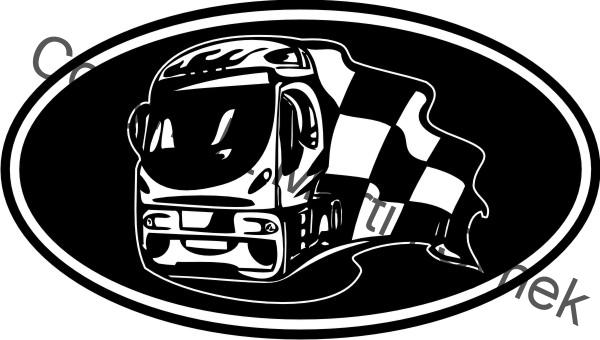 Dekorační samolepka na kamion ve tvaru oválu s různými motivy.