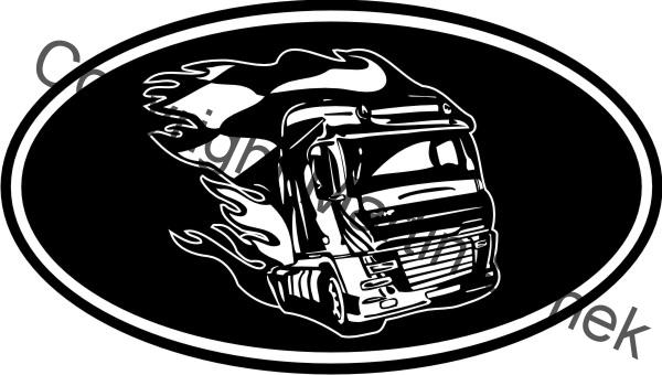 Dekorační samolepka na kamion ve tvaru oválu s různými motivy.