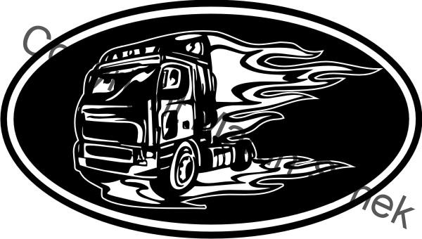 Dekorační samolepka na kamion ve tvaru oválu s různými motivy.
