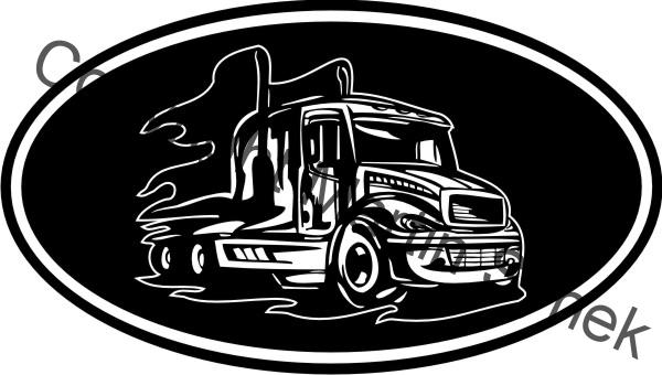 Dekorační samolepka na kamion ve tvaru oválu s různými motivy.