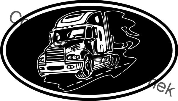 Dekorační samolepka na kamion ve tvaru oválu s různými motivy.