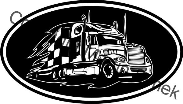 Dekorační samolepka na kamion ve tvaru oválu s různými motivy.