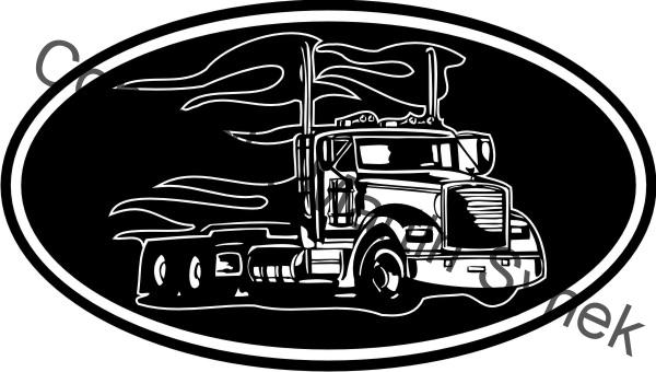 Dekorační samolepka na kamion ve tvaru oválu s různými motivy.