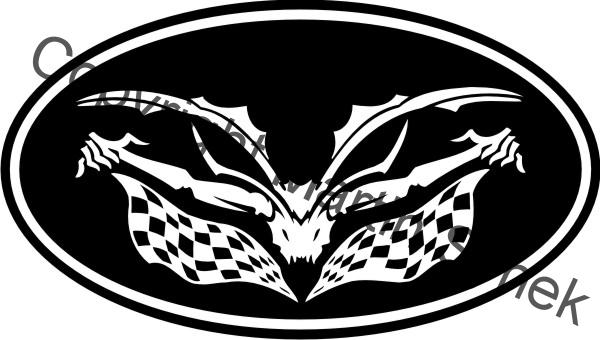 Dekorační samolepka na kamion ve tvaru oválu s různými motivy.