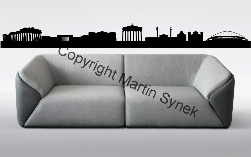 Město Atény.. Krásná dekorační samolepka na zeď. Historické město krásného Řecka.