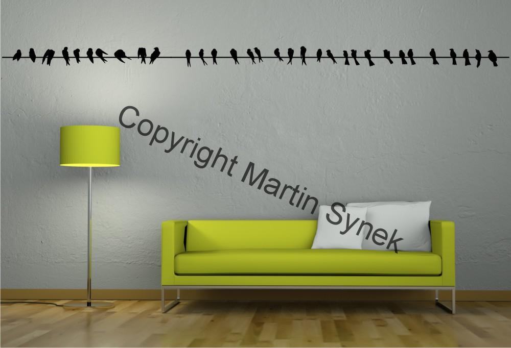 Samolepka na zeď ptáci na drátě.