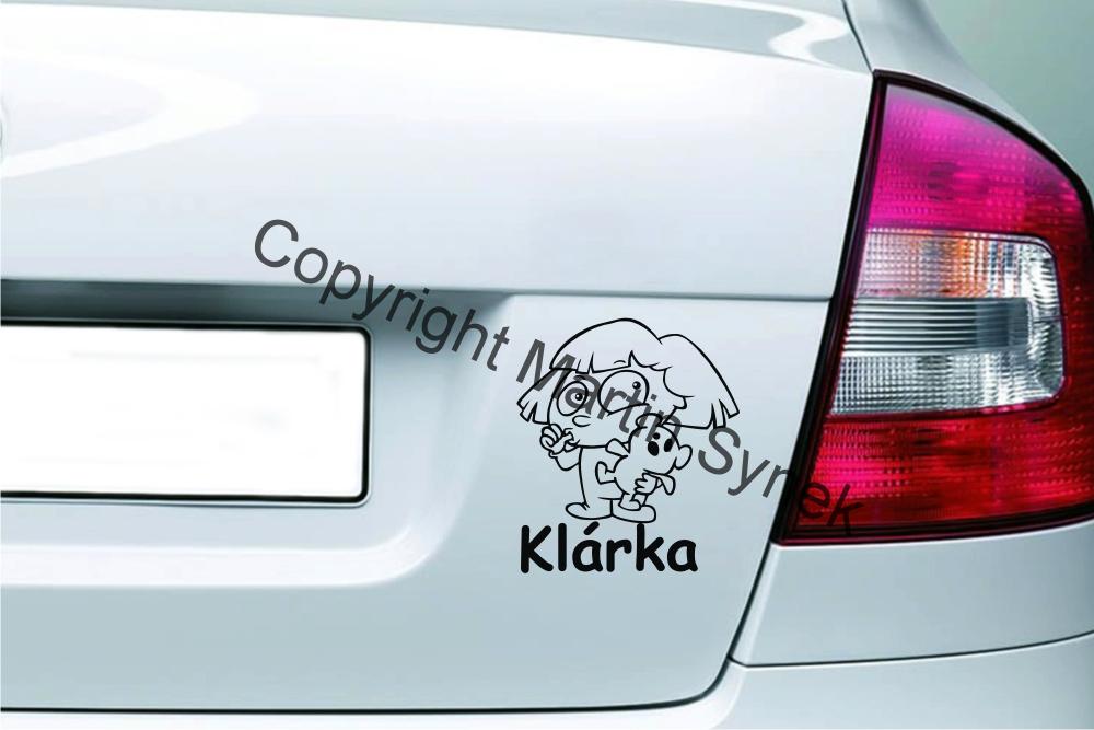 Samolepka na auto.. Je vyrobena z kvalitní folie a je odolná vůči otěru... Tuto samolepku Vám vyrobíme ve standartní velikosti šířky 20cm, nebo dle přání. Rozměr si prosím zadejte ve vlastnostech. Jméno či požadovaný text si prosím zadejte do poznámky při objednání produktu (vložení do košíku). T... celý popis
