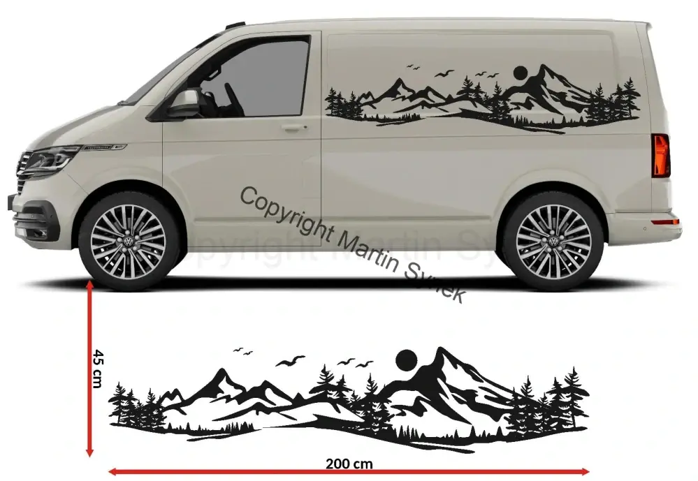 Samolepka na karavan, obytné auto, či obytnou dodávku. Vyrábíme ve všech rozměrech v jednom kuse do šířky maximálně 120cm. Větší rozměry lze vyrobit individuálně z více kusů. Samolepka je jedna strana, pokud potřebujete samolepku na obě strany vozidla, prosím zadejte si tento požadavek v parametrech objednávky. V případě zakoupení sady, tedy na obě strany vozidla vám dodáme levou i pravou stranu.