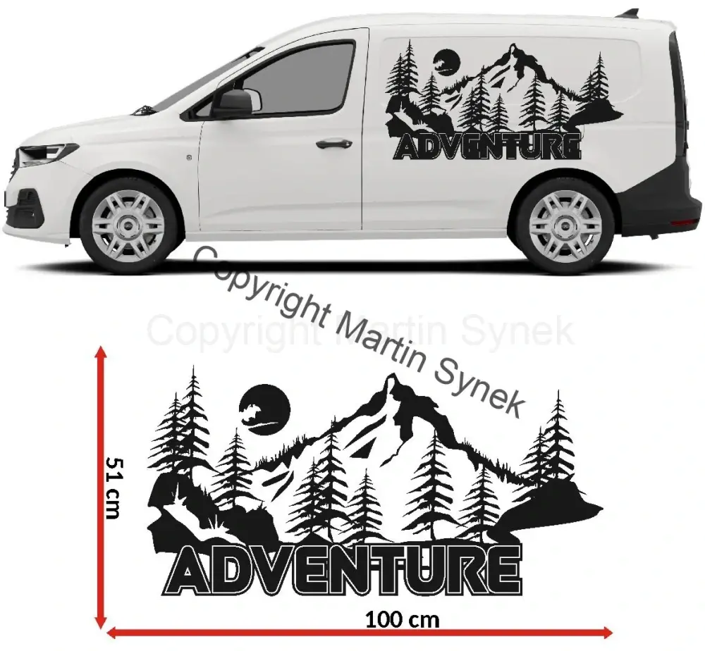 Samolepka na karavan, obytné auto, či obytnou dodávku. Vyrábíme ve všech rozměrech v jednom kuse do šířky maximálně 120cm. Větší rozměry lze vyrobit individuálně z více kusů.