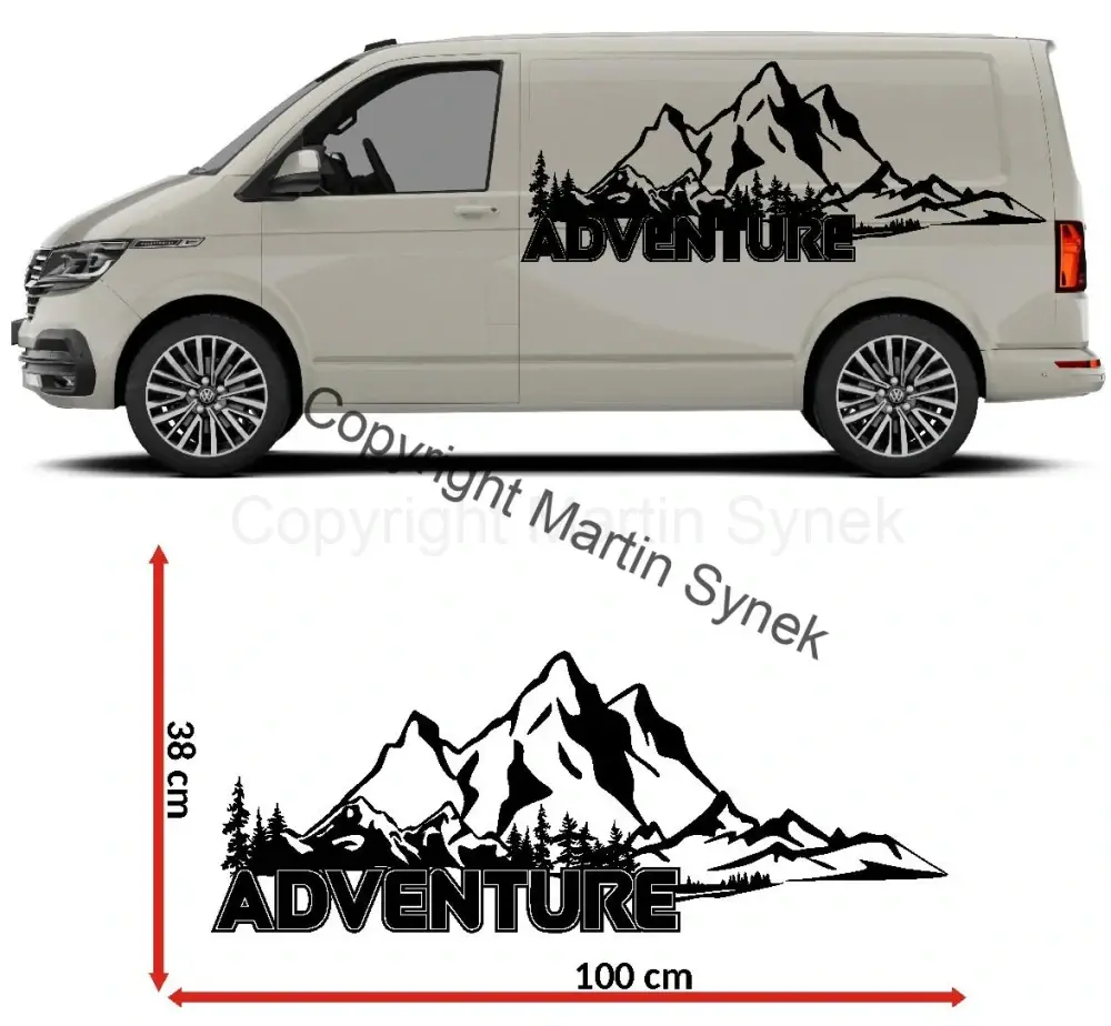 Samolepka na karavan, obytné auto, či obytnou dodávku. Vyrábíme ve všech rozměrech v jednom kuse do šířky maximálně 120cm. Větší rozměry lze vyrobit individuálně z více kusů.