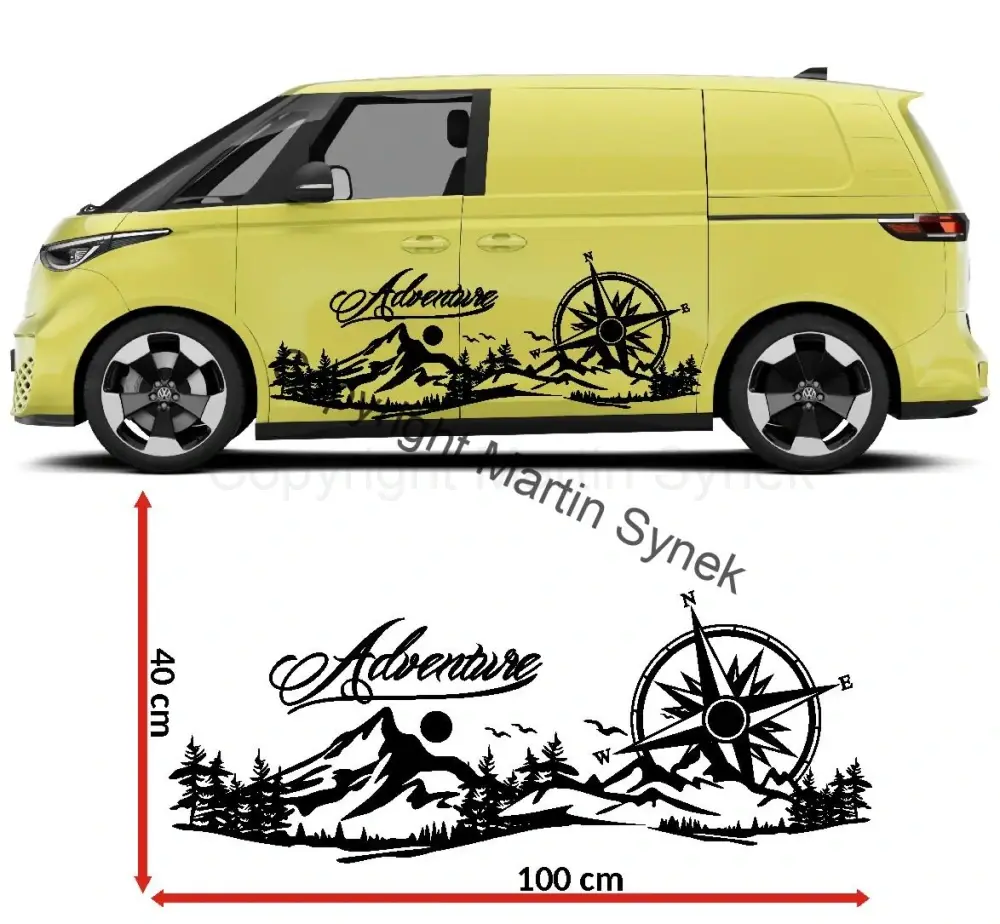 Samolepka na karavan, obytné auto, či obytnou dodávku. Vyrábíme ve všech rozměrech v jednom kuse do šířky maximálně 120cm. Větší rozměry lze vyrobit individuálně z více kusů.