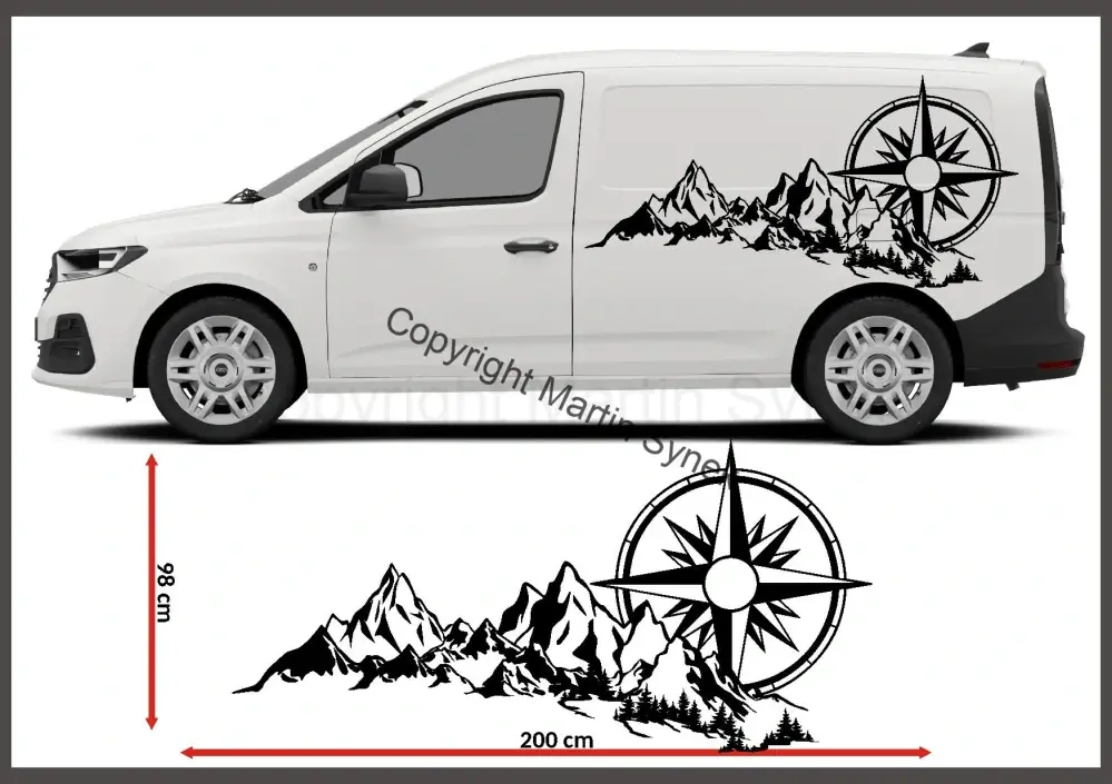 Samolepka na karavan, obytné auto, či obytnou dodávku. Vyrábíme ve všech rozměrech v jednom kuse do šířky maximálně 120cm. Větší rozměry lze vyrobit individuálně z více kusů. Samolepka je jedna strana, pokud potřebujete samolepku na obě strany vozidla, prosím zadejte si tento požadavek v parametrech objednávky. V případě zakoupení sady, tedy na obě strany vozidla vám dodáme levou i pravou stranu.
