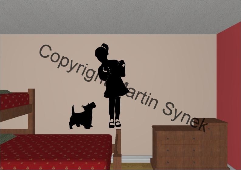 - samolepka na zeď - holčička s pejskem