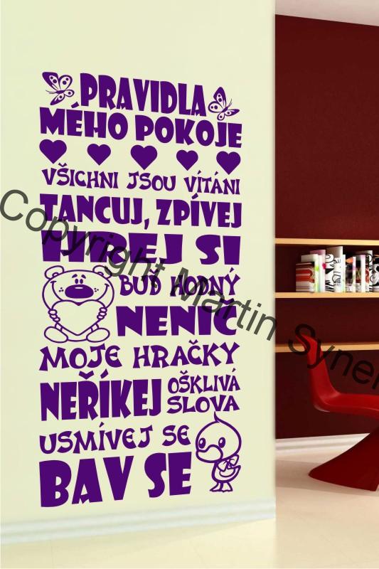 Samolepka na zeď - stylový nápis " pravidla mého pokoje"