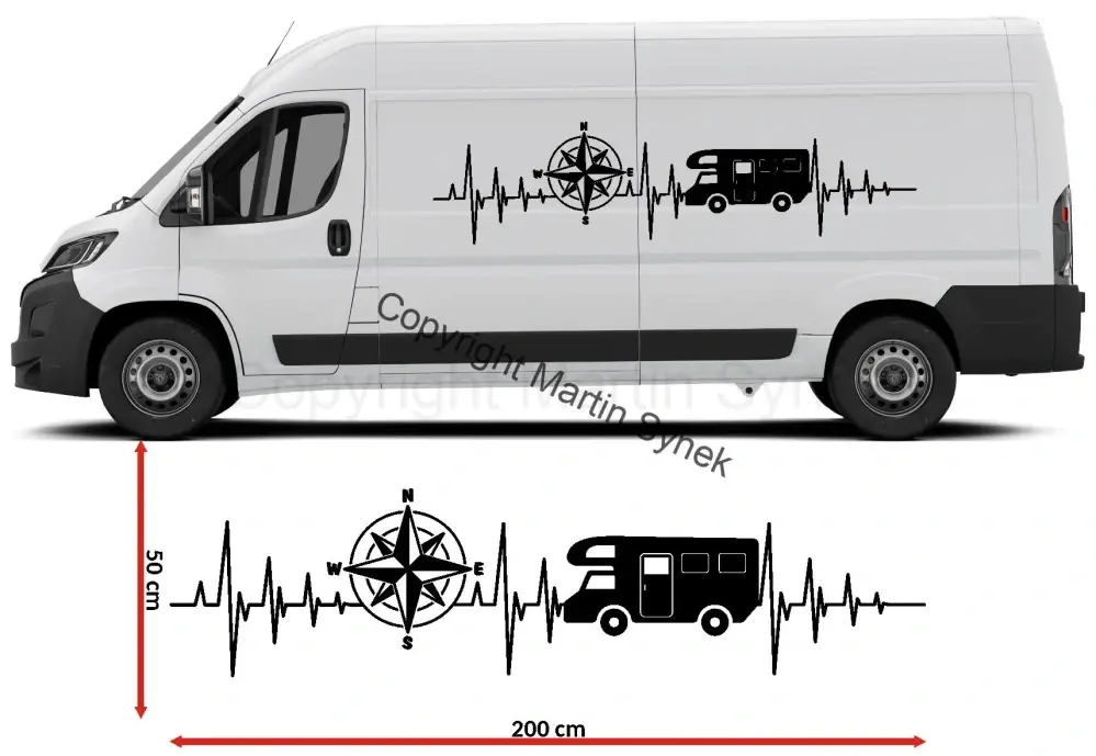Samolepka na karavan, obytné auto, či obytnou dodávku. Samolepka puls. Vyrábíme v základních rozměrech. Potřebujete jiný rozměr? Kontaktujte nás na emilu, chat, nebo telefon.