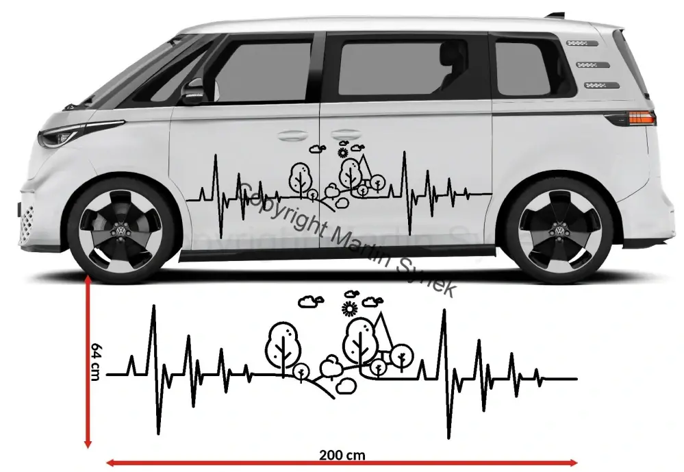 Samolepka na karavan, obytné auto, či obytnou dodávku. Samolepka puls. Vyrábíme v základních rozměrech. Potřebujete jiný rozměr? Kontaktujte nás na emilu, chat, nebo telefon.